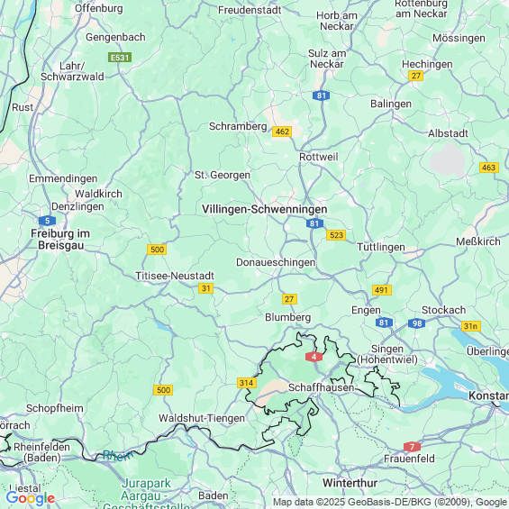 Städte in der Nähe von Donaueschingen