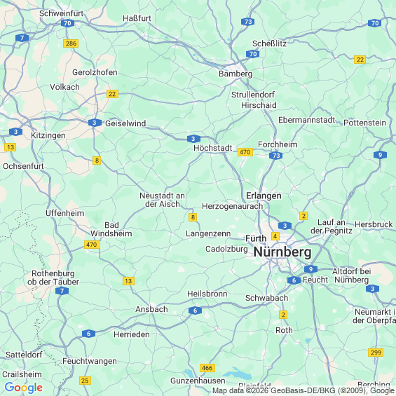 Städte in der Nähe von Oberreichenbach Erlangen-Höchstadt