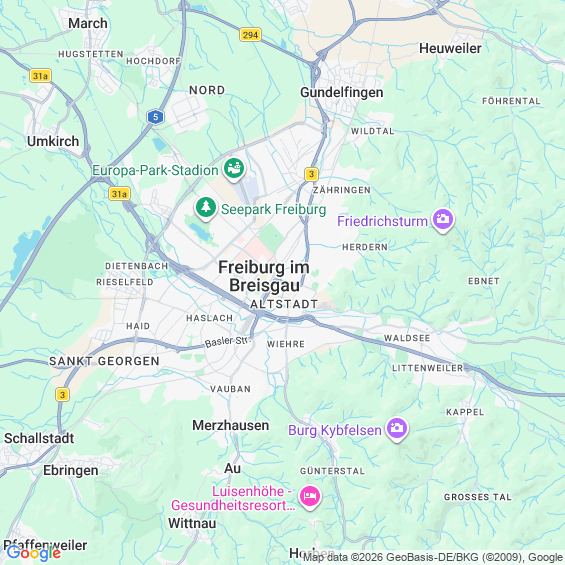 Städte in der Nähe von Freiburg im Breisgau