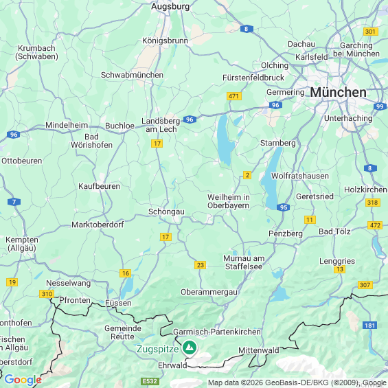 Städte in der Nähe von Hohenpeißenberg