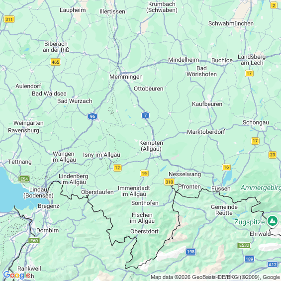Städte in der Nähe von Kempten (Allgäu)