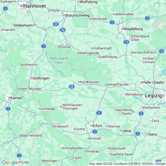 Städte in der Nähe von Urbach Nordhausen