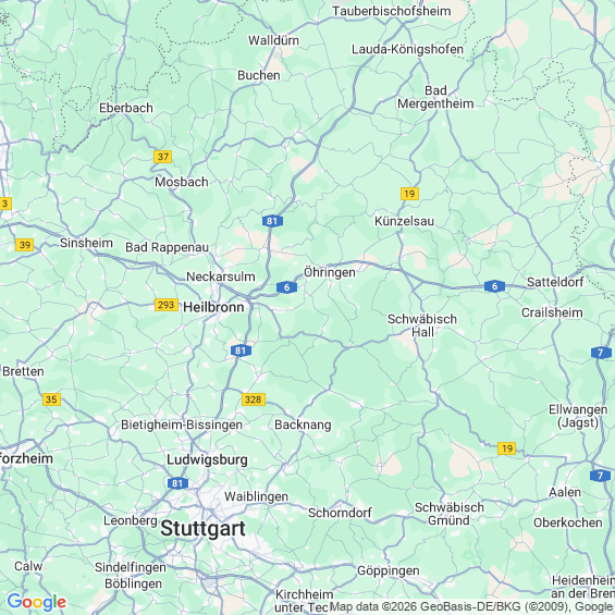 Städte in der Nähe von Pfedelbach