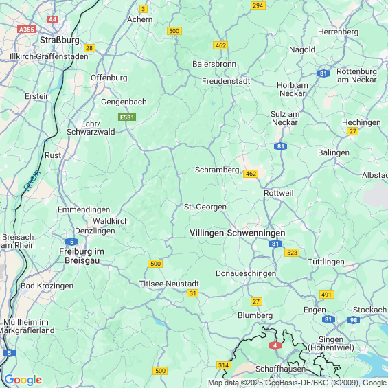 Städte in der Nähe von St. Georgen im Schwarzwald