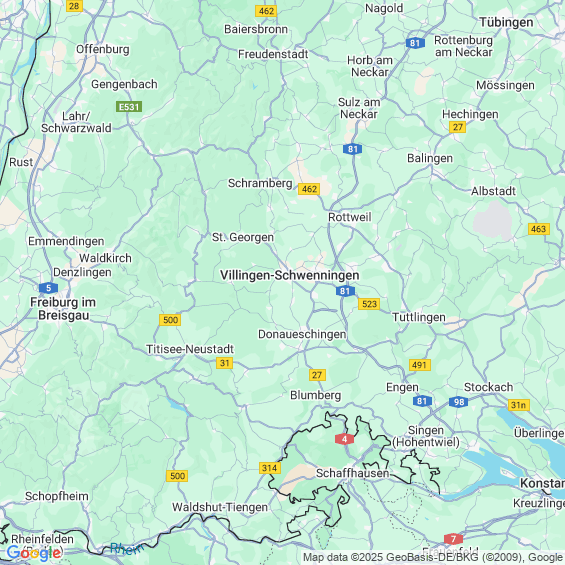 Städte in der Nähe von Villingen-Schwenningen
