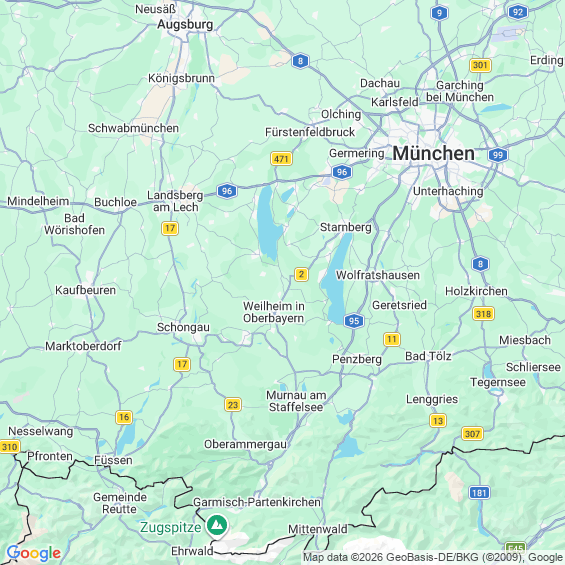 Städte in der Nähe von Weilheim in Oberbayern
