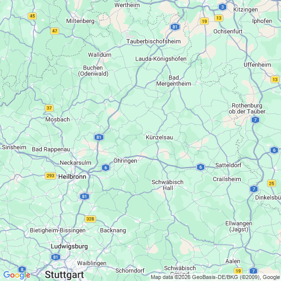 Städte in der Nähe von Weißbach Hohenlohekreis