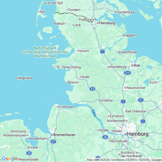 Städte in der Nähe von Wesselburenerkoog